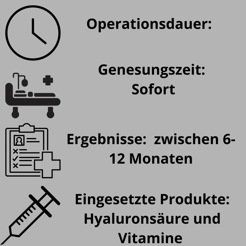 Transdermale Gesichtsbiostimulation: Zellregeneration ohne OP Transdermale Gesichtsbiostimulation: Tiefenregeneration für ein vitales Hautbild Die transdermale Gesichtsbiostimulation markiert einen Wendepunkt in der modernen Ästhetik. Während klassische Behandlungen oft nur an der Oberfläche wirken, zielt dieses Verfahren darauf ab, hochkonzentrierte Wirkstoffe direkt in die tieferen Schichten der Dermis zu schleusen. Das Ziel ist nicht die kurzfristige Faltenauffüllung, sondern die biologische Reaktivierung der Hautzellen (Fibroblasten), um die körpereigene Produktion von Kollagen und Elastin nachhaltig zu steigern. In Deutschland wird dieser Ansatz besonders von Patienten geschätzt, die Wert auf natürliche Ergebnisse und eine langfristige Verbesserung der Hautqualität legen, ohne das Gesichtsvolumen künstlich zu verändern. Was bedeutet «transdermal» in der Ästhetik? Der Begriff „transdermal“ beschreibt den Transport von Substanzen durch die Hautbarriere hindurch. Da unsere Haut als Schutzorgan darauf ausgelegt ist, Fremdstoffe abzuwehren, nutzt die Gesichtsbiostimulation fortschrittliche Technologien, um diese Barriere schmerzfrei und effektiv zu überwinden. Die wichtigsten Wirkstoffe der Biostimulation: Peptide: Signalstoffe, die die Zellerneuerung befeuern. Hyaluronsäure (unvernetzt): Dient der extremen Feuchtigkeitsbindung und Polsterung des Gewebes. Aminosäuren: Die Bausteine für neues Kollagen. Vitamine & Antioxidantien: Schutz vor oxidativem Stress und Radikalfängern. Wirkungsweise: Biostimulation vs. klassische Filler Es ist wichtig, den Unterschied zwischen einer Biostimulation und einer Faltenunterspritzung mit Fillern zu verstehen: Filler (z. B. vernetztes Hyaluron): Erzeugen sofortiges Volumen und füllen gezielt tiefe Falten auf. Biostimulation: Verbessert die Hautstruktur, die Spannkraft und den Teint. Es ist ein «Training» für die Haut von innen heraus. Durch die transdermale Applikation wird das gesamte behandelte Areal (Gesicht, Hals oder Dekolleté) gleichmäßig versorgt, was zu einem harmonischen und frischen Erscheinungsbild führt, das oft als «Glow» bezeichnet wird. Für wen ist die Behandlung geeignet? Die transdermale Gesichtsbiostimulation ist ideal für Patienten mit folgenden Anliegen: Prävention: Vorbeugung der ersten Zeichen der Hautalterung ab 30 Jahren. Feuchtigkeitsmangel: Revitalisierung von müder, fahler und dehydrierter Haut. Spannkraftverlust: Festigung der Konturen bei beginnender Hauterschlaffung. Sonnenschäden: Regeneration der Haut nach intensiver UV-Exposition. FAQ – WISSENSWERTES ZUR BIOSTIMULATION Wie lange hält der Effekt der Gesichtsbiostimulation an?+ Da die Hautqualität biologisch verbessert wird, hält der Effekt nach einer abgeschlossenen Kur etwa 6 bis 9 Monate an. Eine regelmäßige Auffrischung hilft, das jugendliche Hautbild dauerhaft zu konservieren. Kann man die Biostimulation mit anderen Behandlungen kombinieren?+ Absolut. Die transdermale Biostimulation lässt sich hervorragend mit Methoden wie der Mikrodermabrasion oder leichten chemischen Peelings kombinieren, da eine vorherige Abtragung der Hornschicht die Aufnahmefähigkeit der Haut weiter erhöht. Gibt es eine Ausfallzeit nach der Behandlung?+ Einer der größten Vorteile ist die fehlende Downtime. Das Gesicht kann unmittelbar nach der Behandlung leicht rosig sein, was jedoch nach kurzer Zeit abklingt. Sie sind sofort wieder gesellschaftsfähig. Wie viele Sitzungen sind für ein sichtbares Ergebnis nötig?+ Nein. Da modernste Methoden zur Wirkstoffeinbringung genutzt werden, ist die Behandlung nahezu schmerzfrei. Im Gegensatz zu klassischen Injektionen gibt es keine Einstiche, was das Risiko für Hämatome minimiert. Ist die transdermale Biostimulation schmerzhaft?+ Nein. Da modernste Methoden zur Wirkstoffeinbringung genutzt werden, ist die Behandlung nahezu schmerzfrei. Im Gegensatz zu klassischen Injektionen gibt es keine Einstiche, was das Risiko für Hämatome minimiert. Mehr zum Thema Transdermale Gesichtsbiostimulation Biostimulation Gesicht Kosten Gesichtsbiostimulation Erfahrungen Transdermale Applikation andlungen im Zusammenhang Transdermale Gesichtsbiostimulation Microneedling mit dem Dermapen PRP-Gesichtsbehandlung Fadenlifting Neueste Blogeinträge Mesotherapie Haare Erfahrungsberichte Kombinierte Haarbehandlungen: Haartransplantation + PRP + Mesotherapie – Wann anwenden? Entfernung von Besenreisern an den Beinen: Gefäßlaser vs. Mikroschaum-Sklerotherapie Verschönern Sie Ihr Gesicht und Ihren Körper mit nicht-chirurgischen ästhetischen Behandlungen. Bruststraffung Vergleich – umfassender Leitfaden zur Entscheidung für Ihre Brustästhetik 7 Behandlungen zur Verjüngung von Hals und Dekolleté Andere Behandlungen Lippenfüller mit Hyaluronsäure Filler unter den Augen Nasenkorrektur mit Hyaluronsäure Harmonisierung des Gesichts Mandibuläre Markierung Wangenfüller Botulinumtoxin (Botox) Radiesse Verjüngung mit Morpheus Diamantspitzen-Mikrodermabrasion Chemisches Peeling Dermapen PRP-Gesichtsbehandlung Hifu ästhetischebehandlungen Transdermale Gesichtsbiostimulation